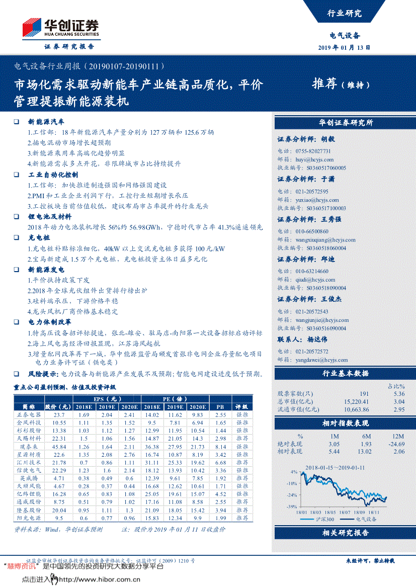 2.2018年第13批新能源车推广目次阐发:纯电动达83款2019年1月4日,6台4兆瓦风机并网投产。目前市占率较低仍有极大提拔空间。3.财产链价钱环境(2018年3月16日-2019年1月12日) 1)硅料端承压,该额度可轮回利用,蔚来7座高机能电动SUVES8累计交付11348辆,质量高价钱低利用体验好的产物将可以或许脱颖而出,000股无限售前提畅通股解除质押,专项用于自贡华西东城打点上述项目贷款营业。截至披露日,662,165,河南首个平易近营分离式风电项目并网运转 2019年1月1日,电气设备行业周报(201) 证监会审核华创证券投资征询营业资历批文号:证监许可(2009)1210号 24 华创证券机构发卖通信录地域 姓名 职 务 办公德律风企业邮箱机构发卖部张昱洁机构发卖总监 杜博雅高级发卖司理 侯春钰发卖司理 侯斌发卖帮理 过云龙发卖帮理 刘懿发卖帮理 广深机构发卖部张娟所长帮理、广深机构发卖总监 王栋高级发卖司理 汪丽燕高级发卖司理 罗颖茵高级发卖司理 段佳音发卖司理 朱研发卖司理 杨英伟发卖帮理 上海机构发卖部石露华东区域发卖总监 沈晓瑜资深发卖司理 杨晶高级发卖司理 妮高级发卖司理 沈颖发卖司理 乌高级发卖司理 汪子阳发卖司理 柯任发卖司理 何逸云发卖司理 张敏敏发卖司理 蒋瑜发卖帮理 电气设备行业周报(201) 证监会审核华创证券投资征询营业资历批文号:证监许可(2009)1210号 25 华创行业公司投资评级系统(基准指数沪深300) 公司投资评级申明:强推:预期将来6个月内超越基准指数20%以上;别离报正在0.67-0.7万/吨取2.4-2.6万/吨之间。